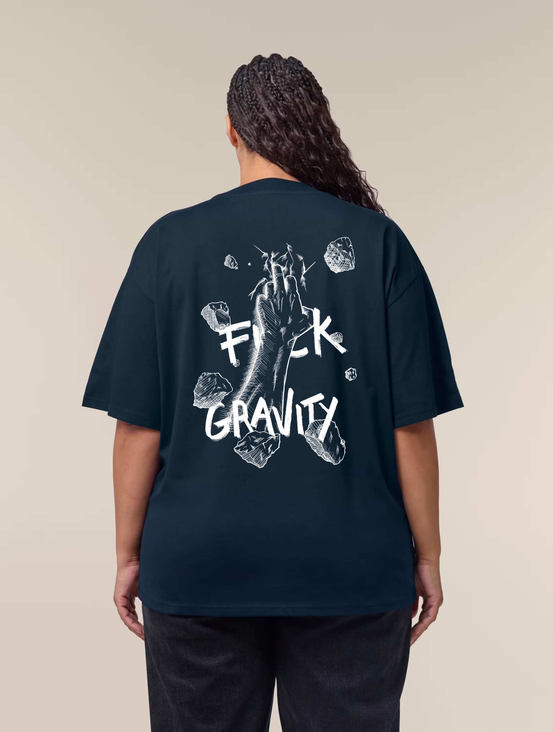T-shirt “Fuck Gravity” oversized unisexe bleu.